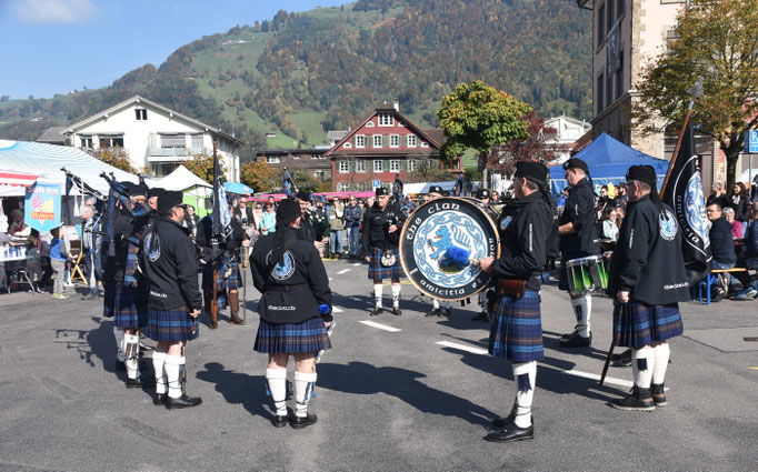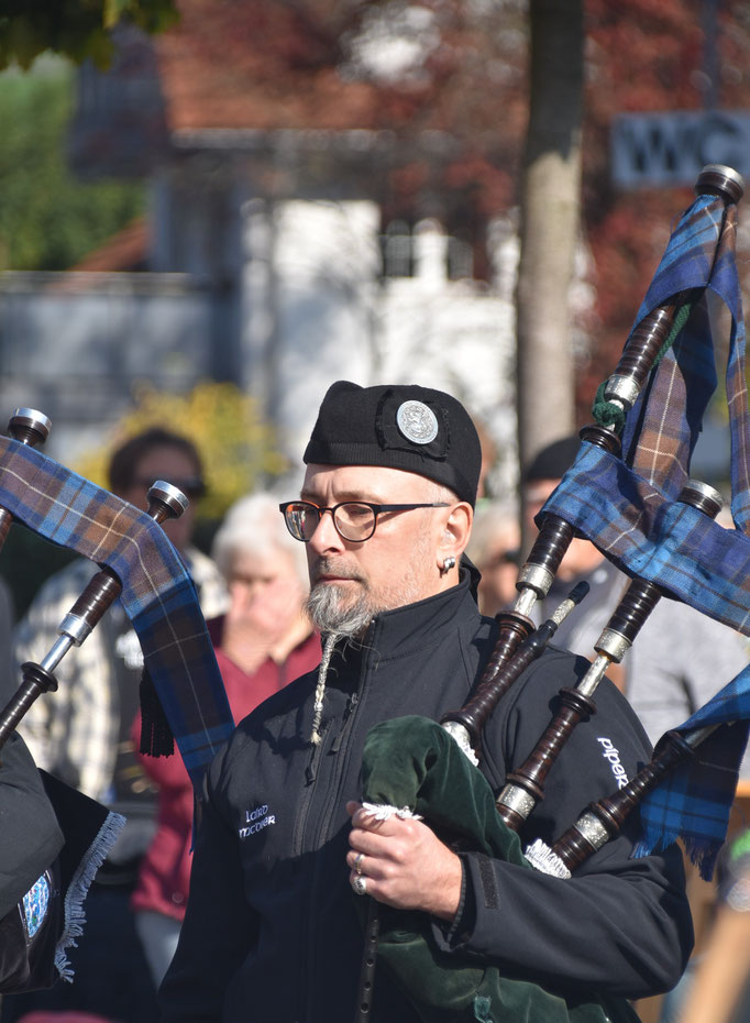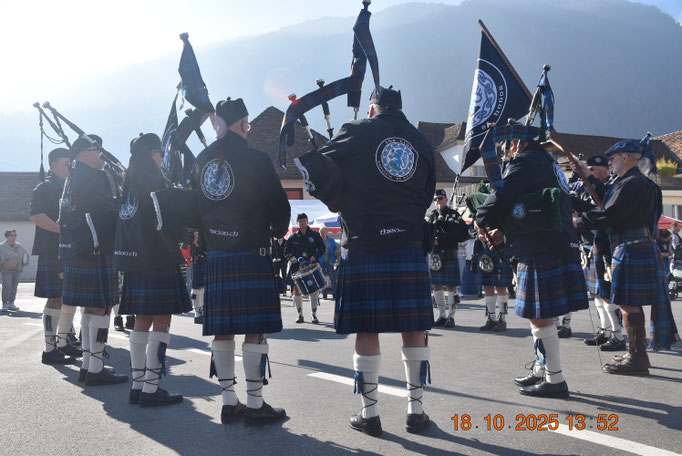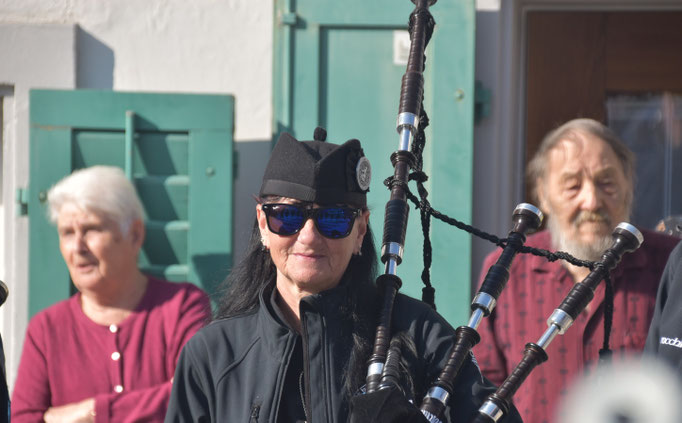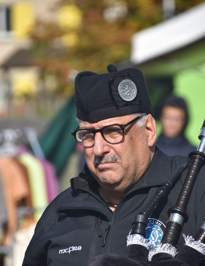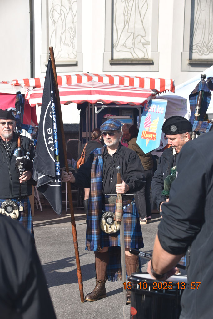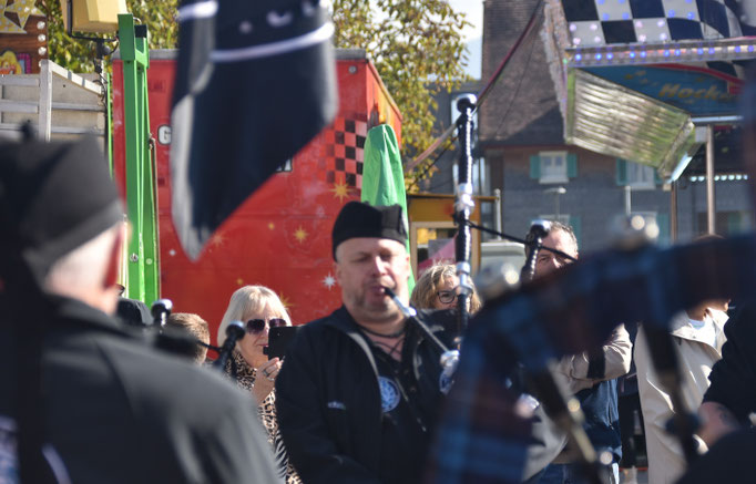 Leider wurde der Nachmittag durch eine trauriges Ereignis überschattet. Zwischen zwei Auftritten erreichte uns die Nachricht, dass unser geschätzter Freund McSmoke, Aktivmitglied von THE CLAN an der Pipe, in der Nacht davor seinem Krebsleiden erlegen ist.   Wir widmeten ihm ein Amazing Grace und waren ganz tief in Gedanken mit ihm verbunden.
